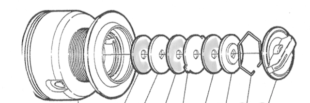 You’ll need to service your drag system periodically to keep it functioning smoothly. Learn how to disassemble the set of washers so you can clean or replace them as necessary. Do this at least a couple of times per year or more, depending on how much you fish, more often if the drag starts to get sticky. This is typical stack for a star drag reel. Also some spinning reels.